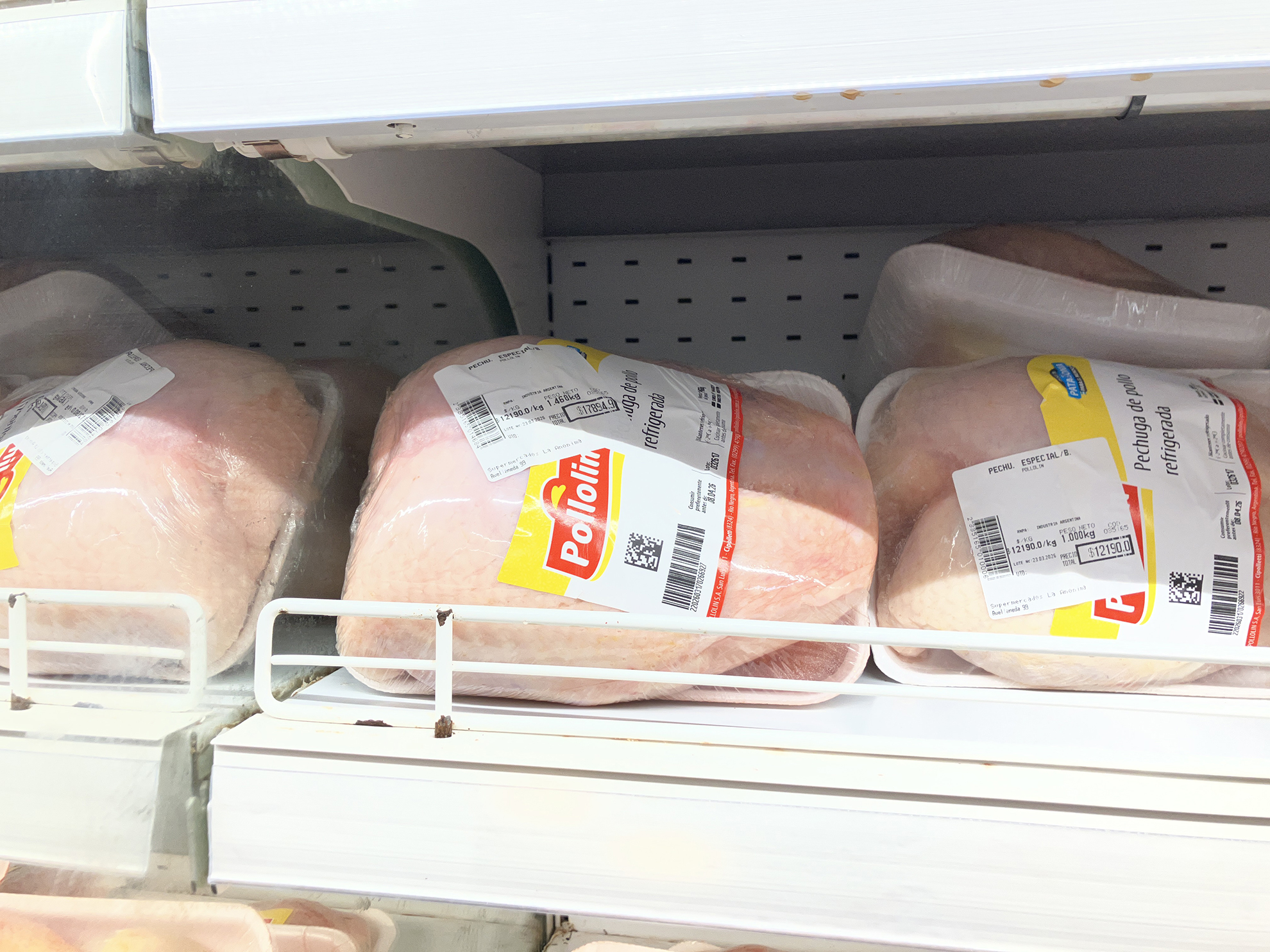 鶏のムネ肉1kg、皮ありAR$12.190(約1,413円)
