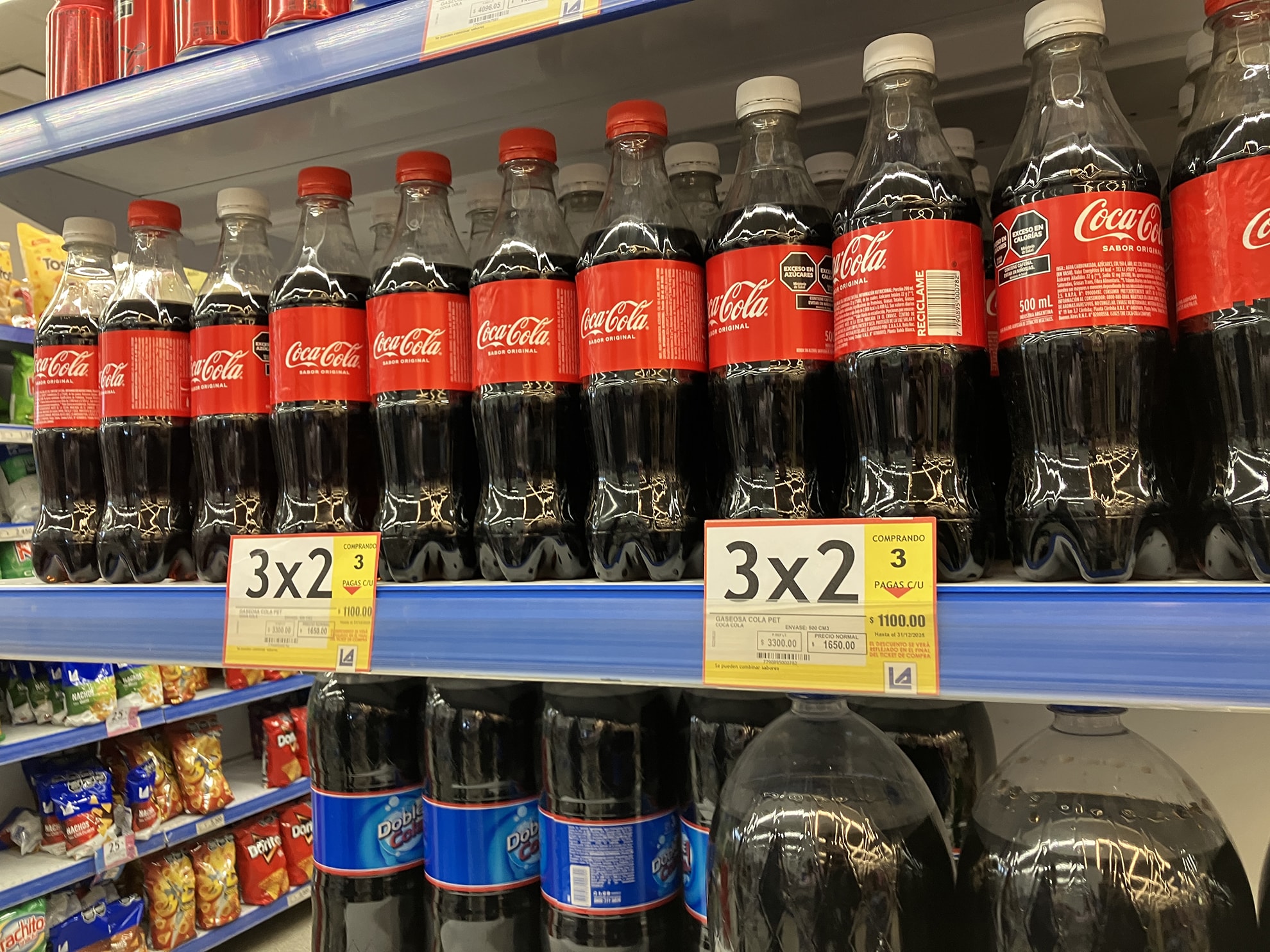 コーラ500mlはAR$1.650(約179円)