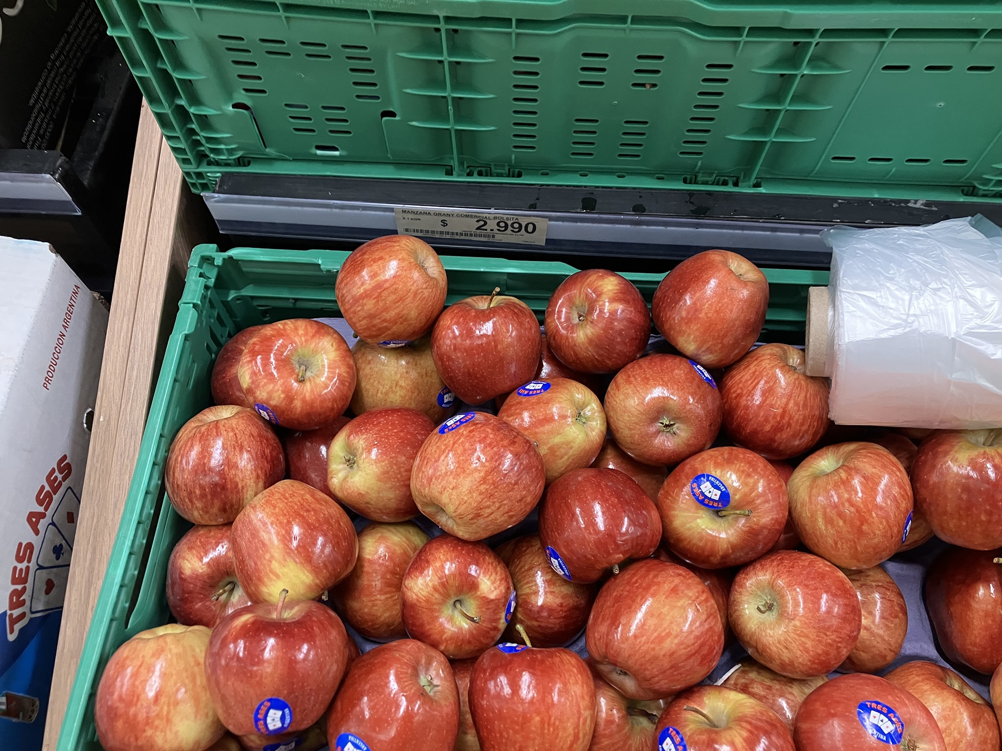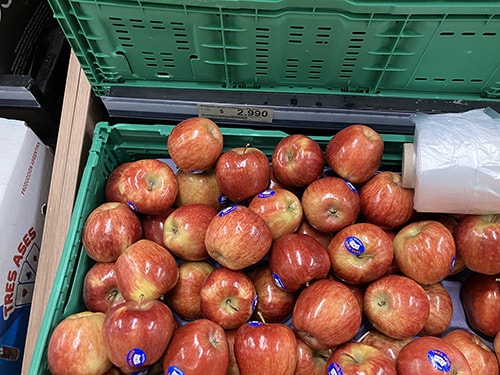 リンゴ1kgあたりAR$2.990(約325円)