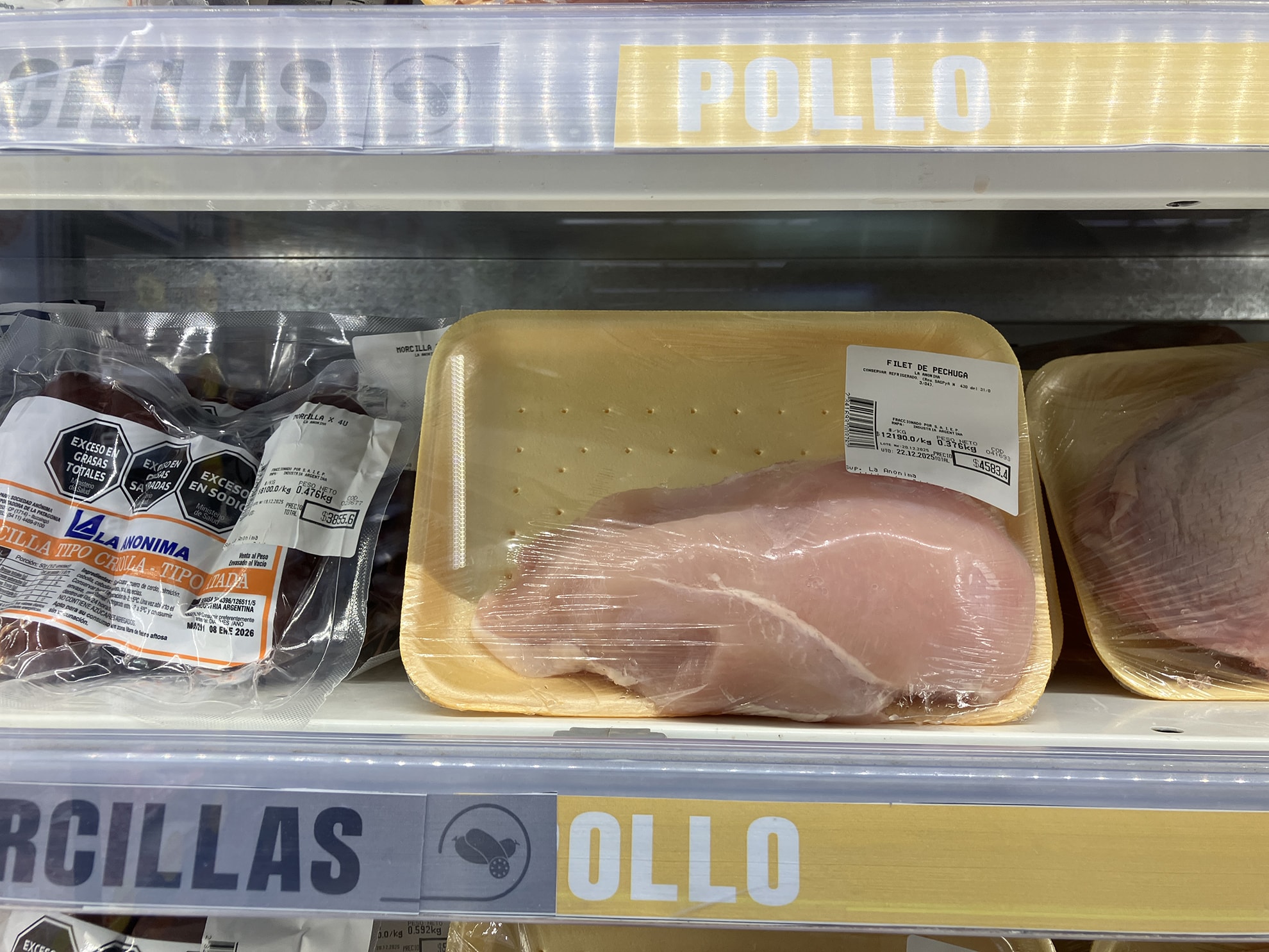鶏のムネ肉1kg、皮なしAR$12.190(約1,326円)