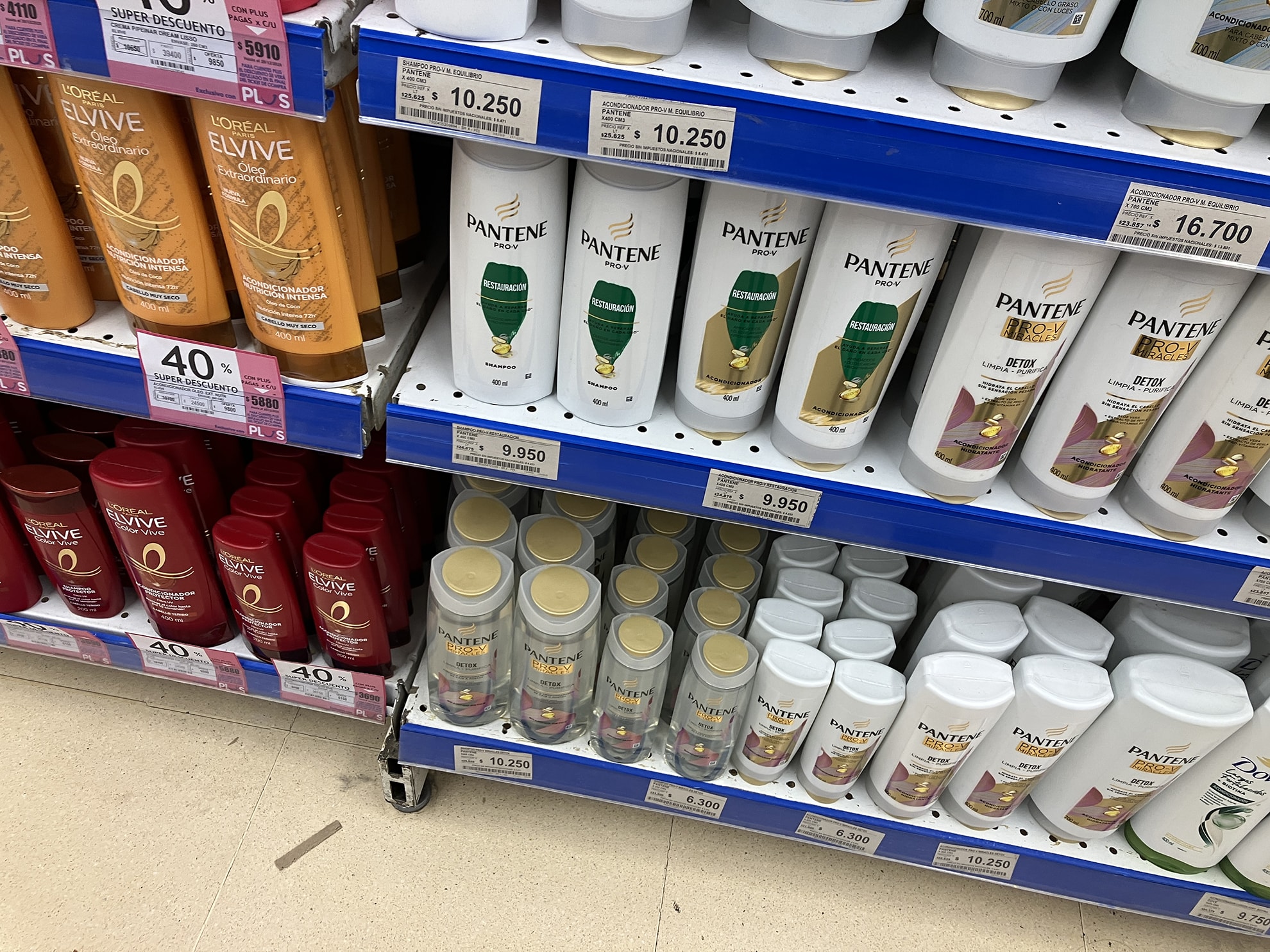 パンテーンのシャンプー400ml、AR$9.950(約1,082円)