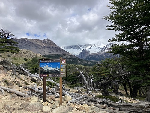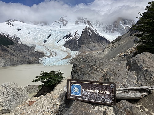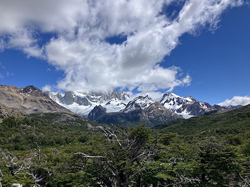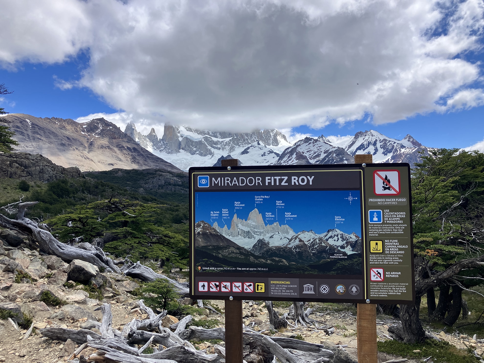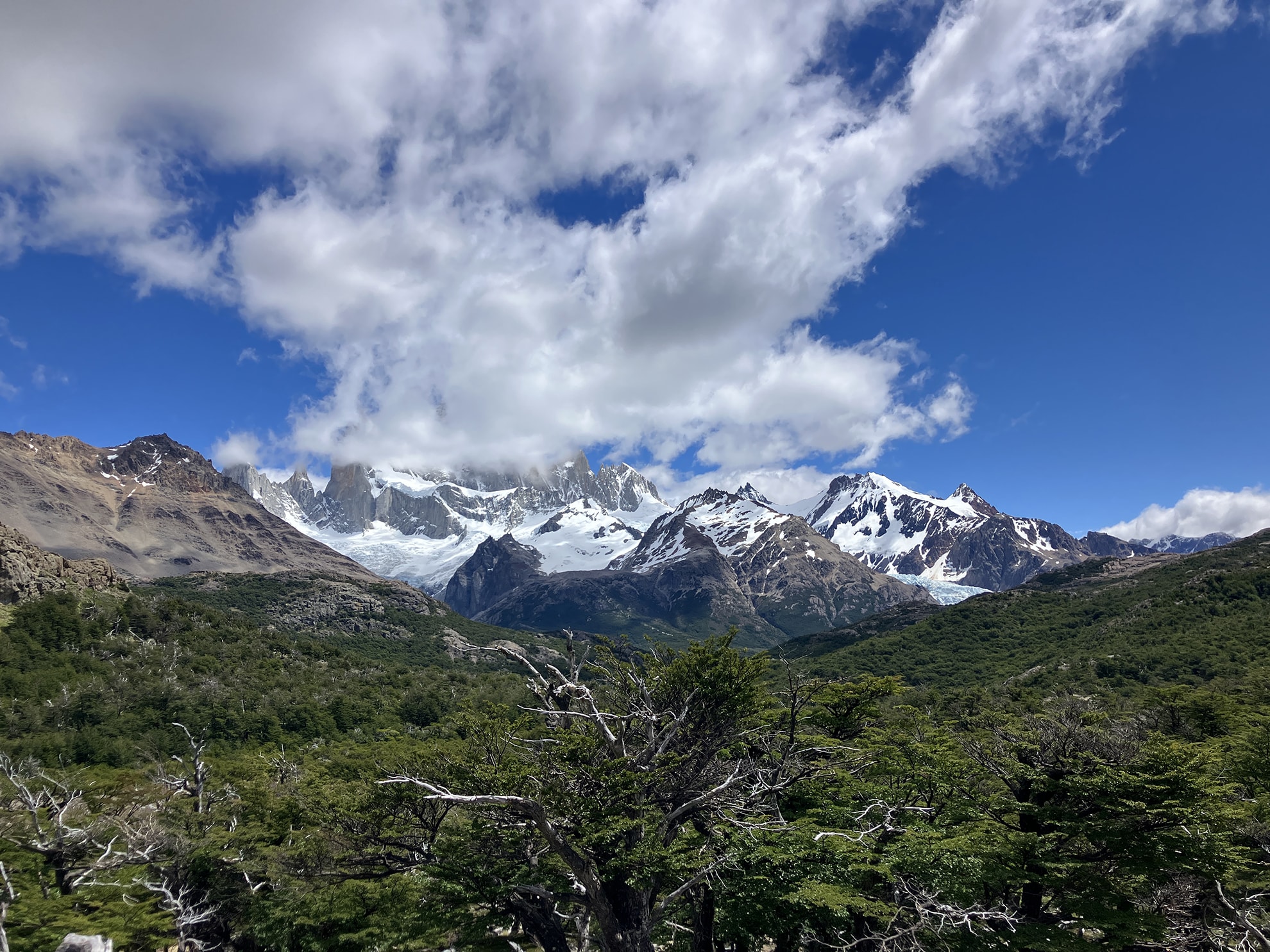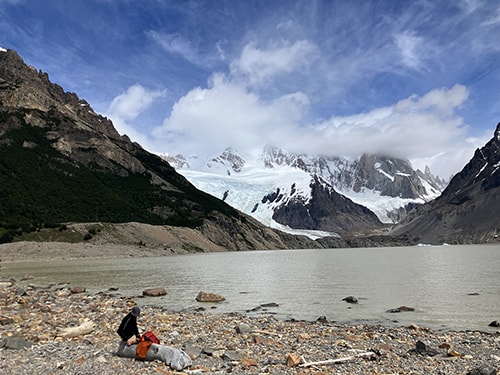 後ろにはフィッツ・ロイをはじめとする山々を見る事ができます