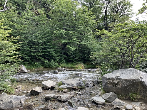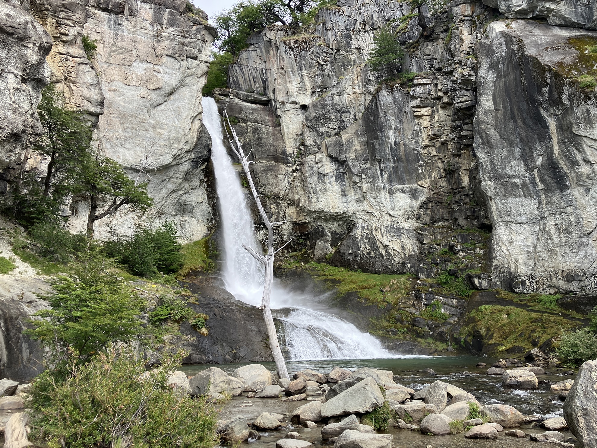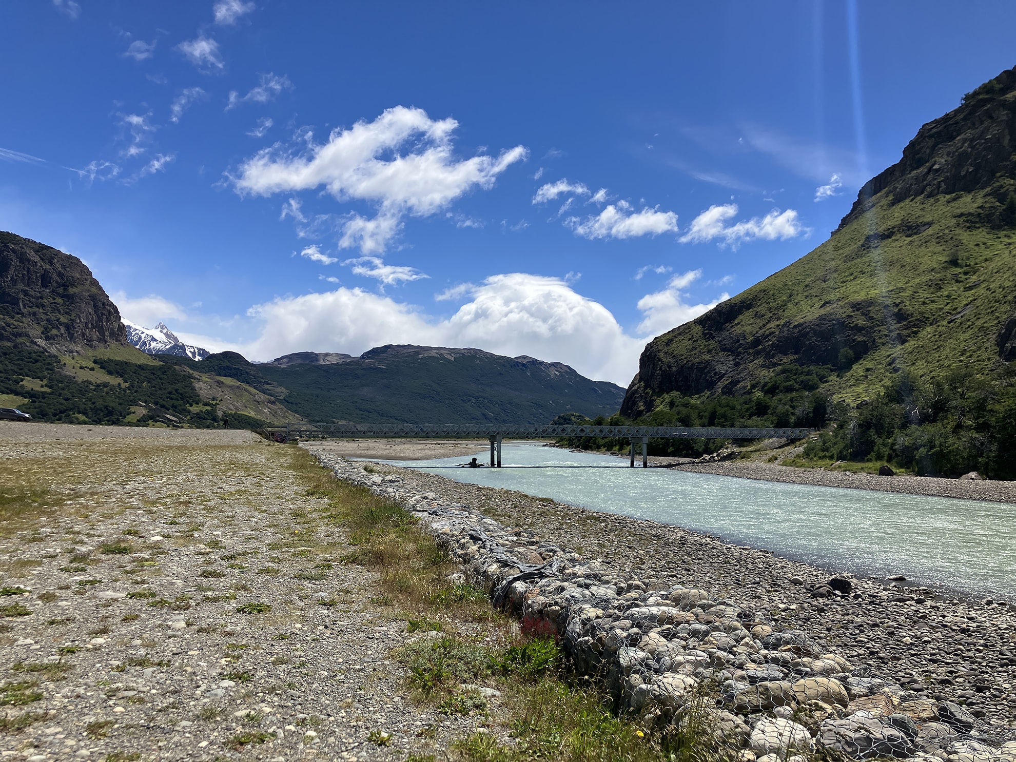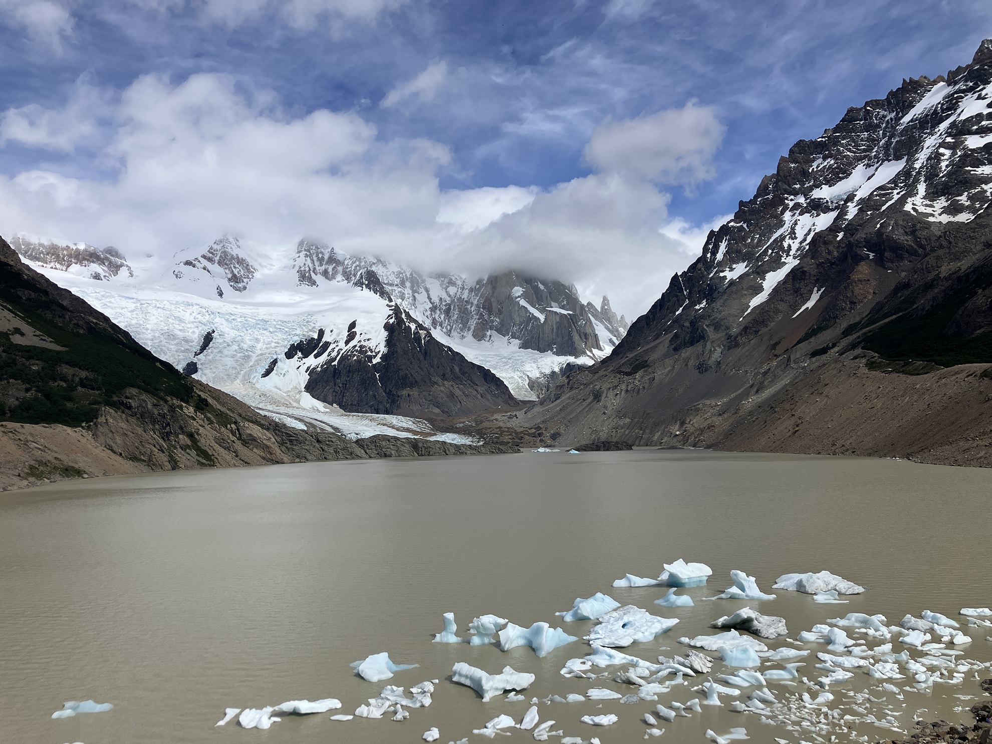 後ろにはフィッツ・ロイをはじめとする山々を見る事ができます