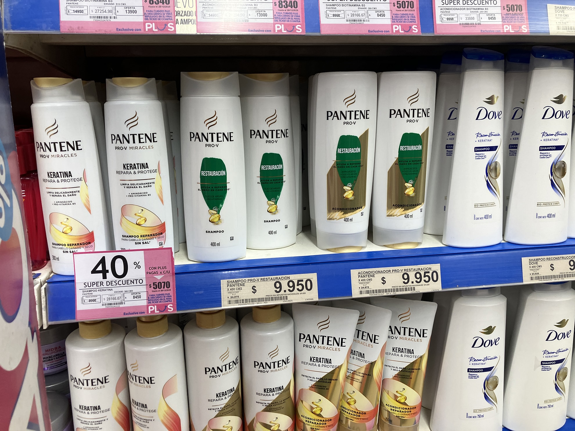 パンテーンのシャンプー400ml、AR$9.950(約1,071円)