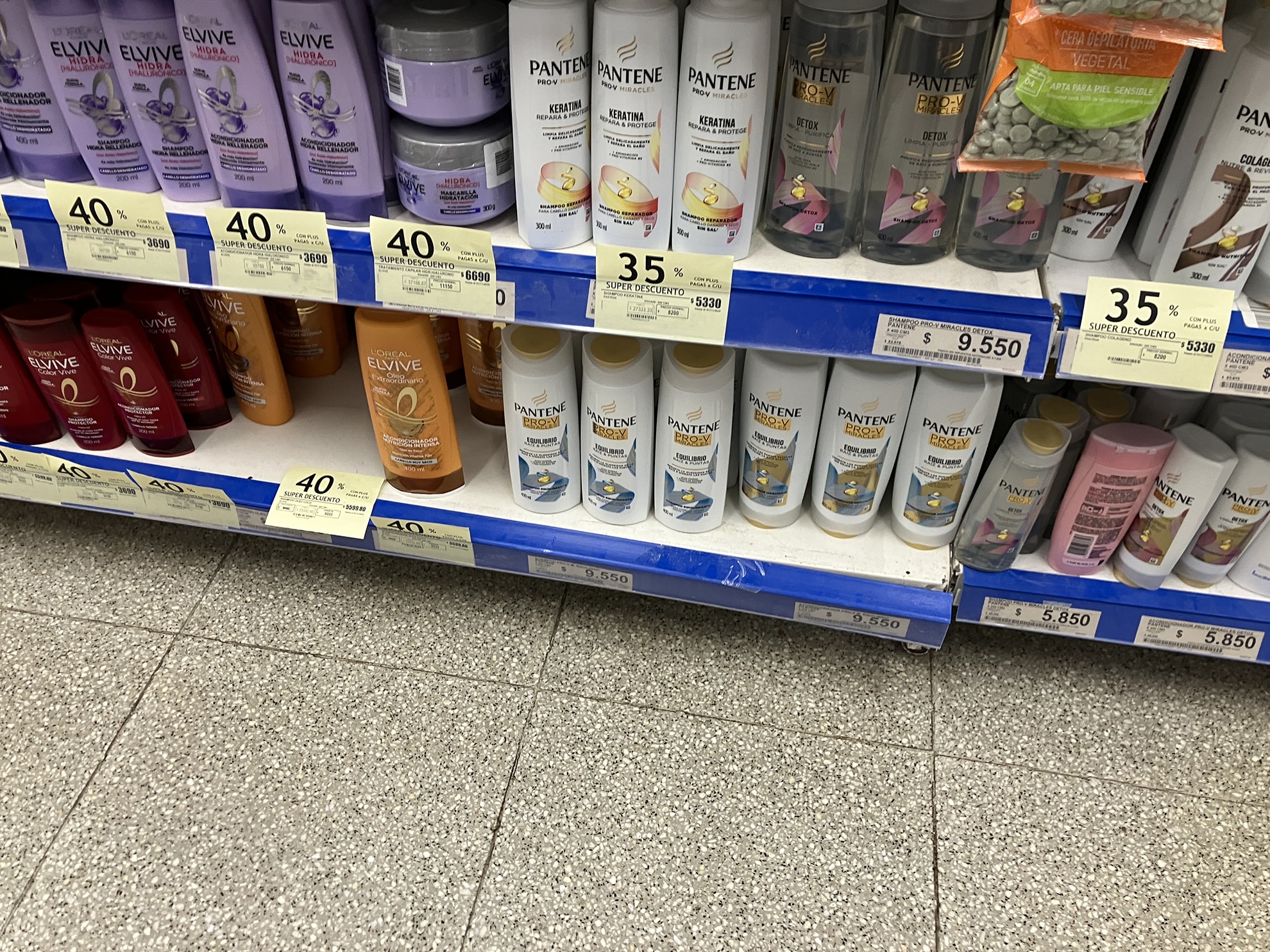 パンテーンのシャンプー400ml、AR$9.550(約1,014円)