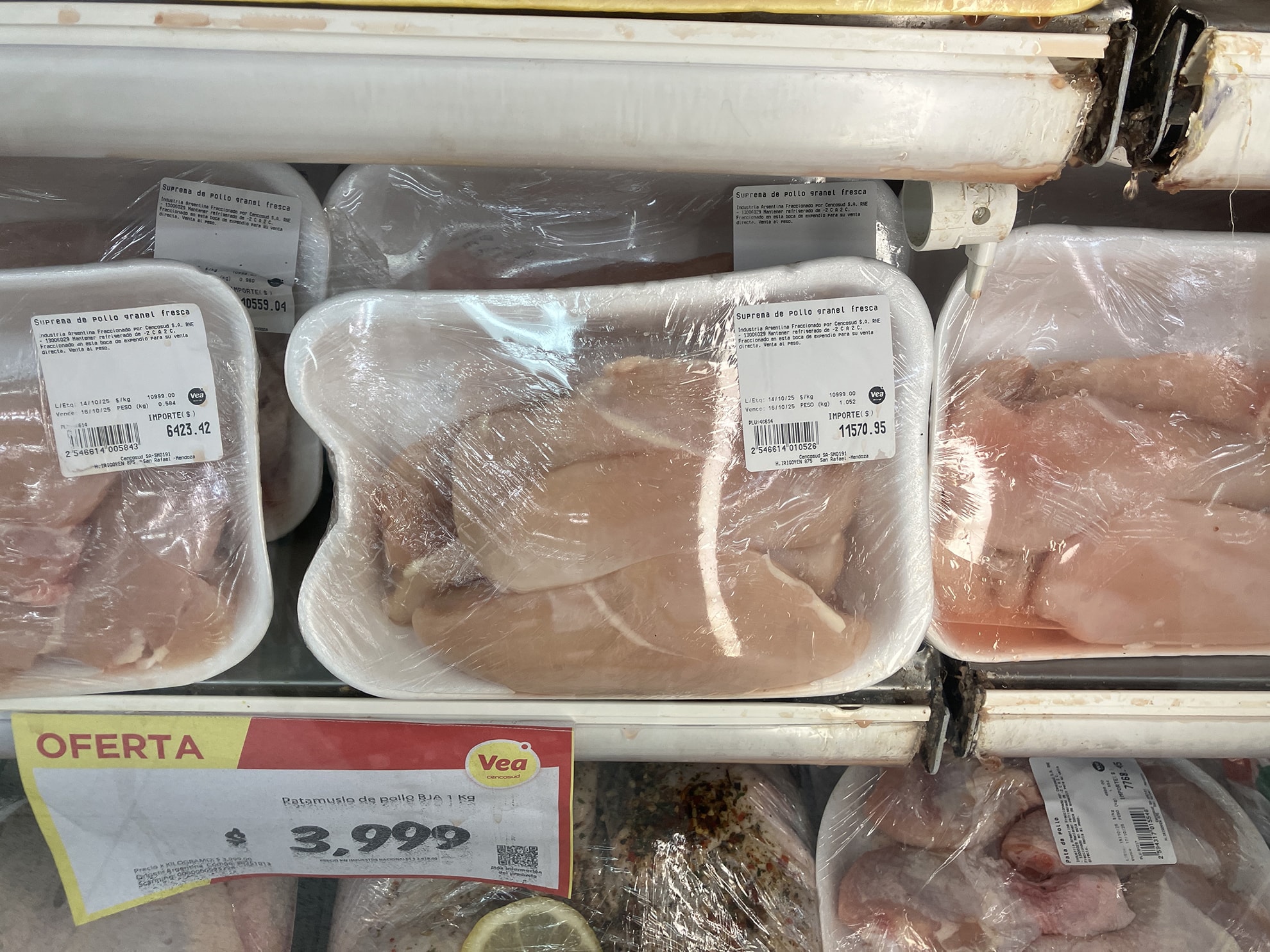 鶏のムネ肉1kg、皮なしAR$9.999(約1,019円)
