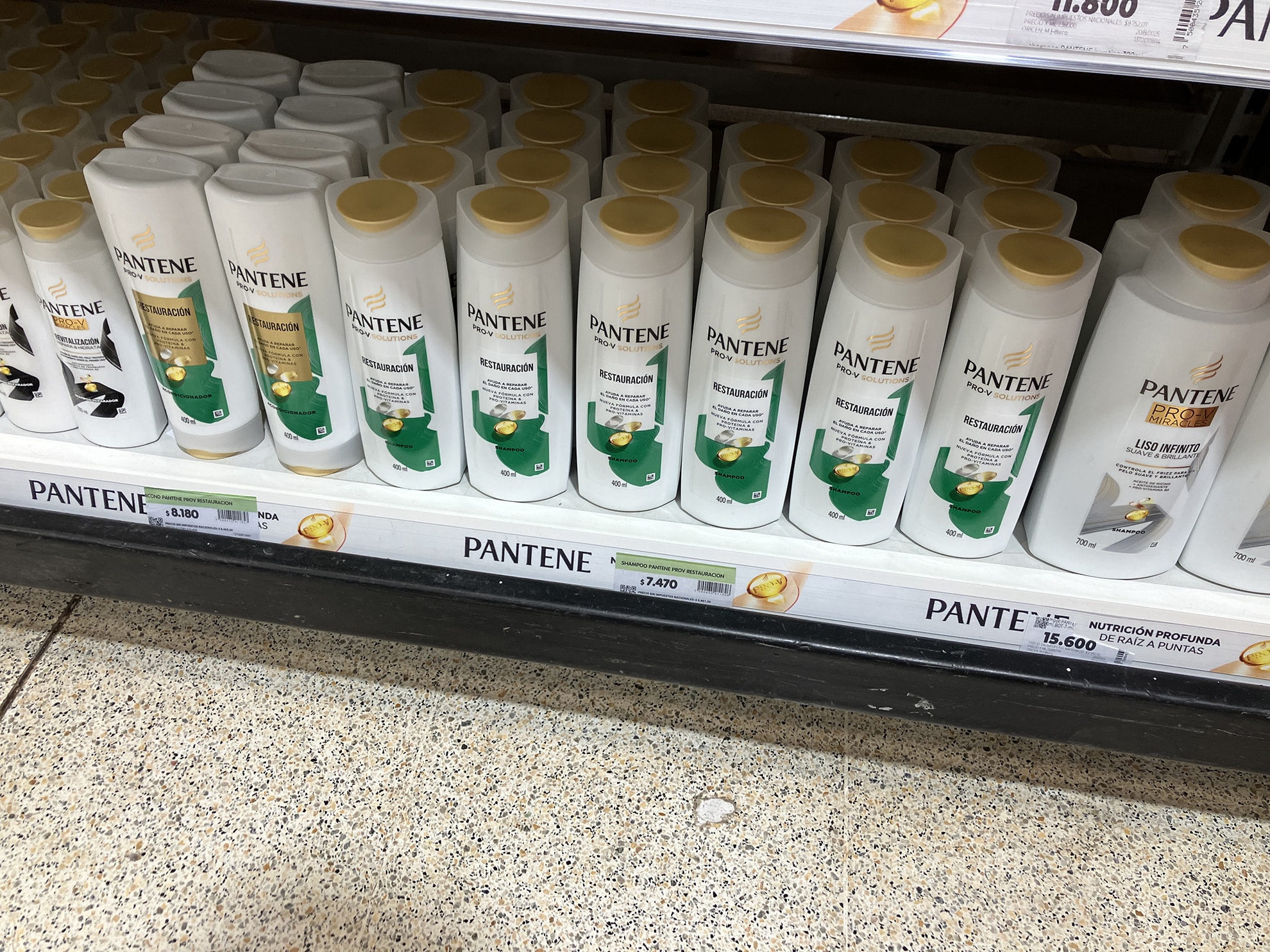 パンテーンのシャンプー400ml、AR$7.470(約761円)