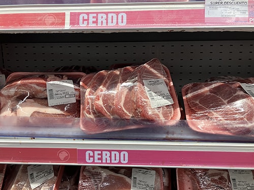 鶏のムネ肉1kg、皮なしAR$18.500(約1,994円)