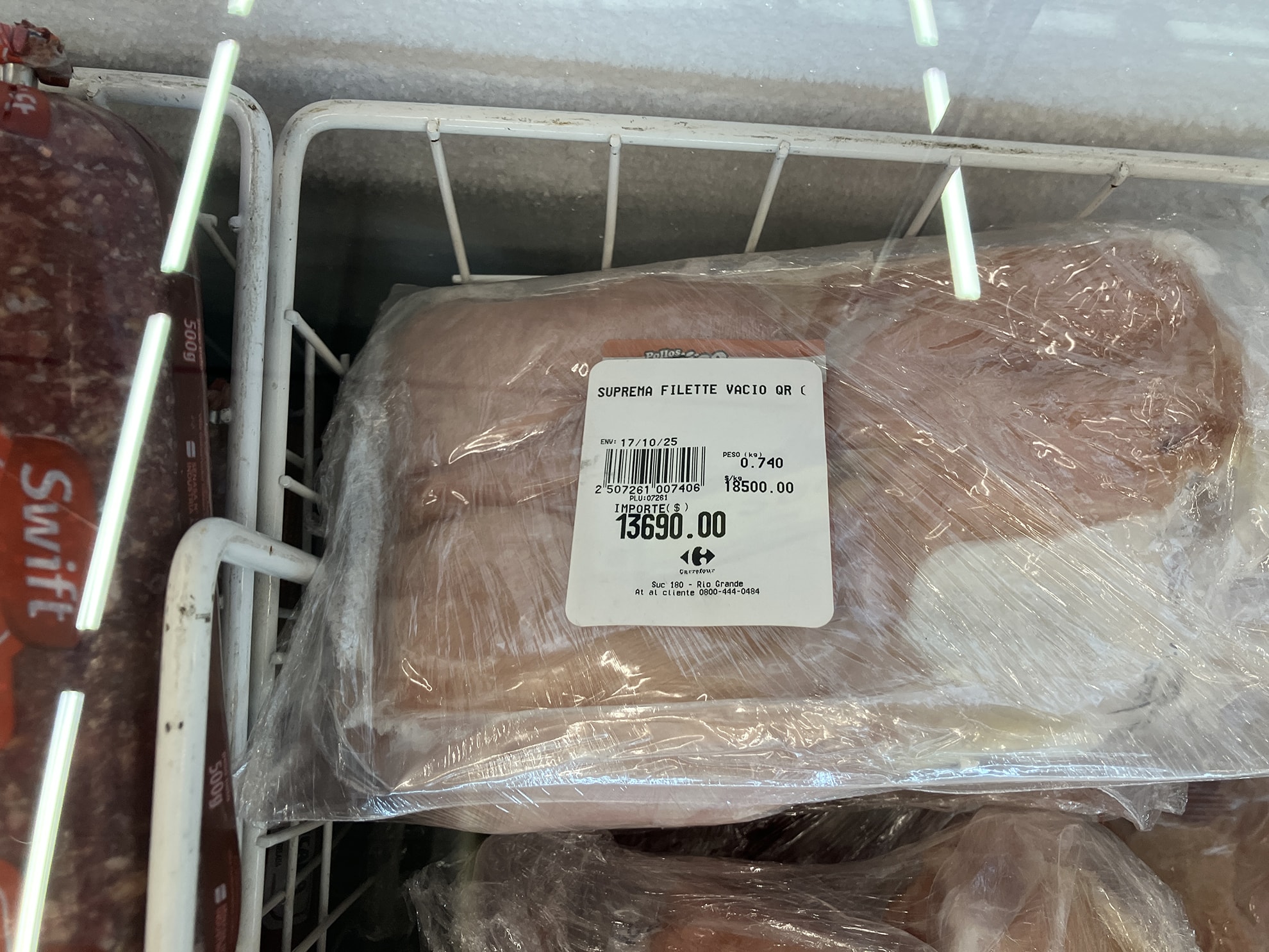 鶏のムネ肉1kg、皮なしAR$18.500(約1,994円)