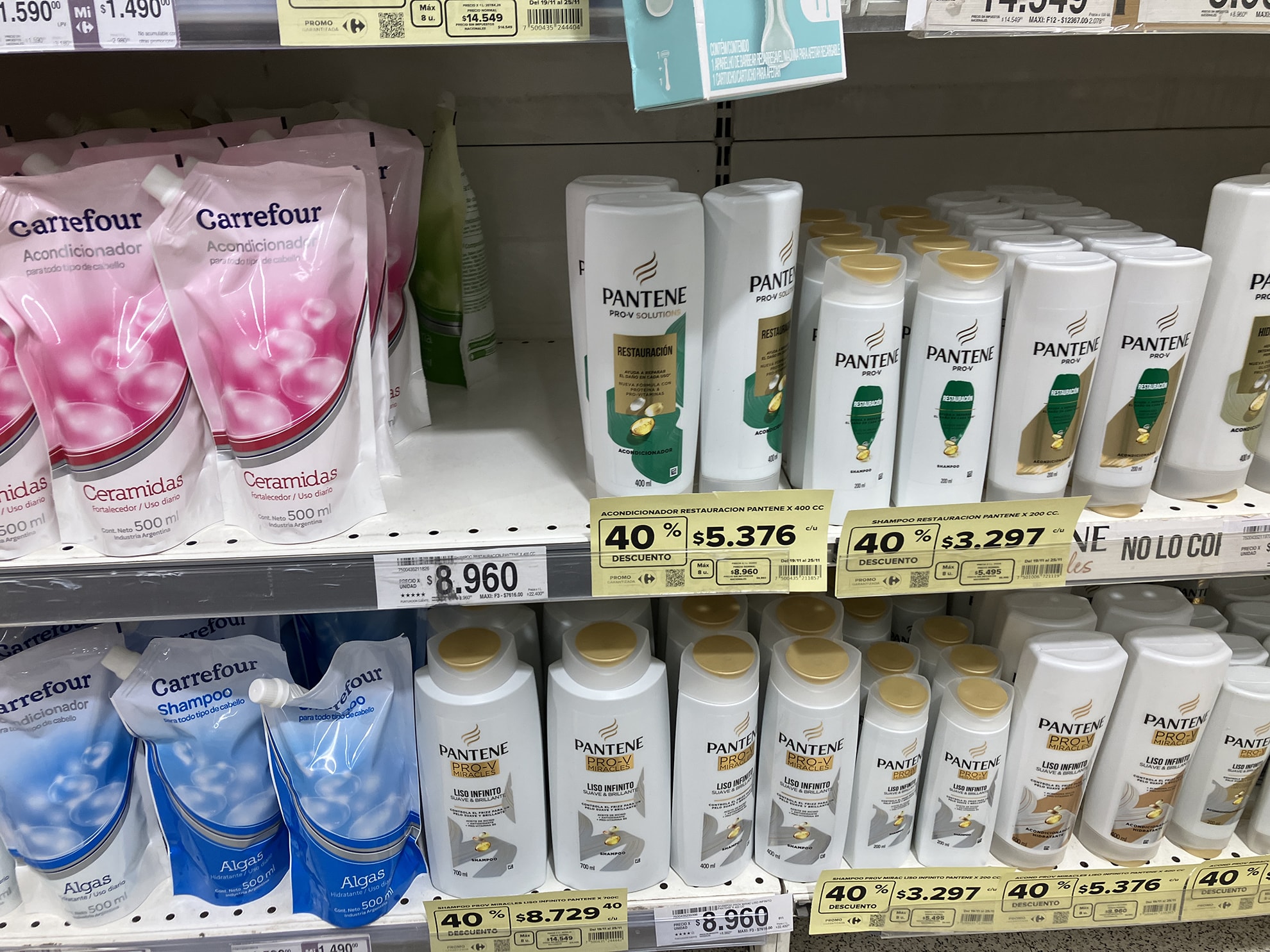 パンテーンのシャンプー400ml、AR$8.960(約966円)