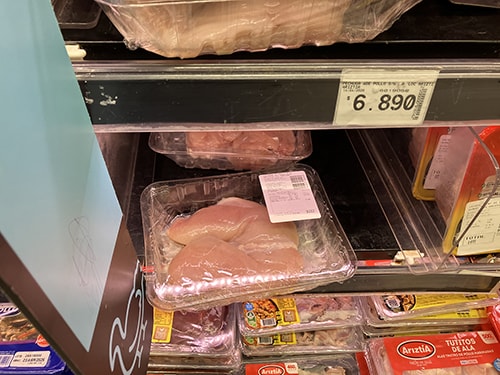 鶏のムネ肉1kg、皮なし$6.890(約1,244円)