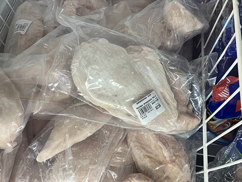 鶏のムネ肉1kg、皮なし$6.650(約1,184円)