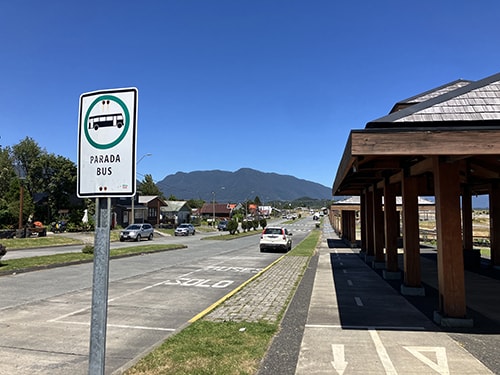 バスターミナルは、海岸沿い、ガソリンスタンドのCOPECの南側に停まります