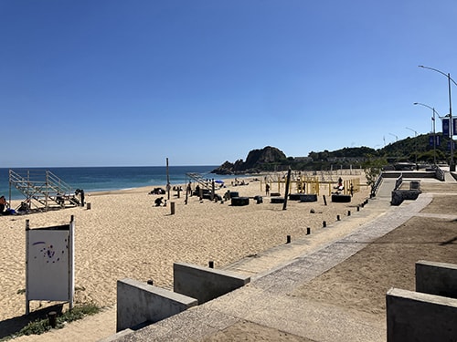 ビーチの東側、生活圏エリアの南側は、アパートやレストランが多くあります