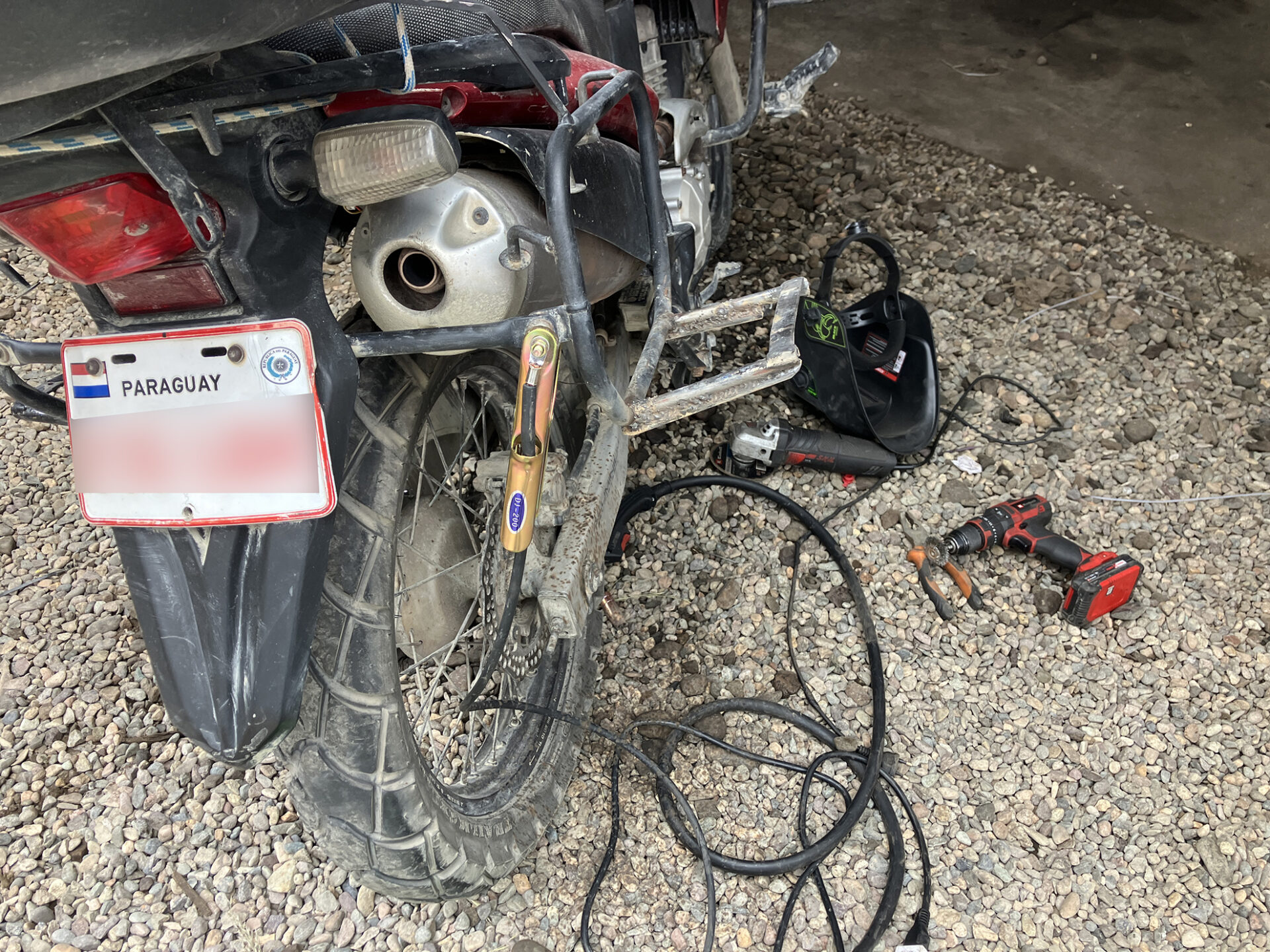 This step is a bit difficult for a loaded motorcycle.